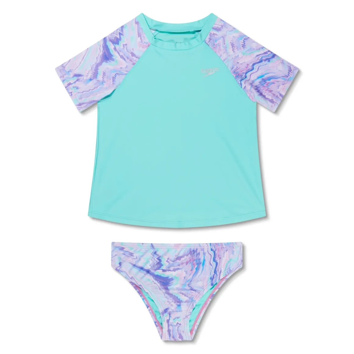 The short sleeve rashguard features fun prints girls love while providing protection from the sun. Made from part recycled material. Block the Burn: UPF 50+ protection blocks up to 98% of the sun’s harmful rays. Chlorine + Piling resistant.
